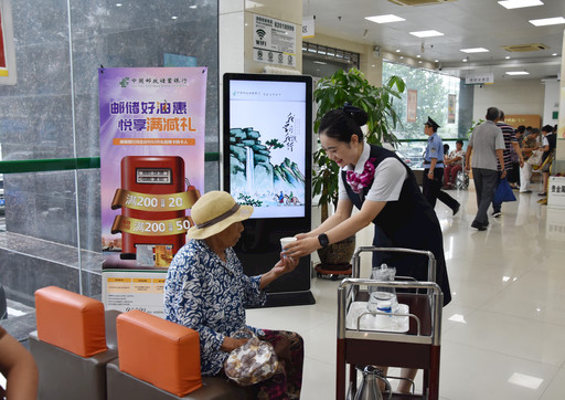 迈入鹿泉支行营业部的营业大厅,厅堂明净亮丽,室内空气清新,体感温度适宜,多处配备中英文标识、无微不至的温馨提示。按照“功能分区、业务分流、服务分层、产品分销”的原则,网点分为了现金业务、自助银行服务、电子银行体验、贵宾服务、儿童游乐等服务区域。分区后的布局更加合理,能更好地满足各类客户的个性需求。为更好地实现客户需求和网点员工数量的平衡,网点设立弹性窗口,按照客流量和高峰期等业务需要合理调配柜员、增设窗口。同时,加大网点自助设备配备力度,引导客户到相应的服务区域,不仅减少了客户的等候时间,还进一步提升了客户的智能服务体验感。
