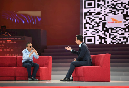 18年前,邱宇在雪线邮路上押运邮件过程中遇到劫匪,为了保护邮件,他头部中弹命悬一线,所幸被几位道班工人相救。从此,双目失明的他再也无缘自己钟爱的雪线邮路押运工作,只能生活在低海拔地区。但多年来,他一直想找到救命恩人,并当面向他们说一声谢谢,摸一摸他们的脸,记住他们的模样。央视《等着我》栏目通过由国家相关部委、公益明星、志愿者和广大热心公益的观众组成的公益寻人平台的不懈努力,让他与两位救命恩人在北京相聚,圆了邱宇多年来的寻人梦。图为邱宇(左)在节目录制现场向主持人讲述当年工作的情景。
