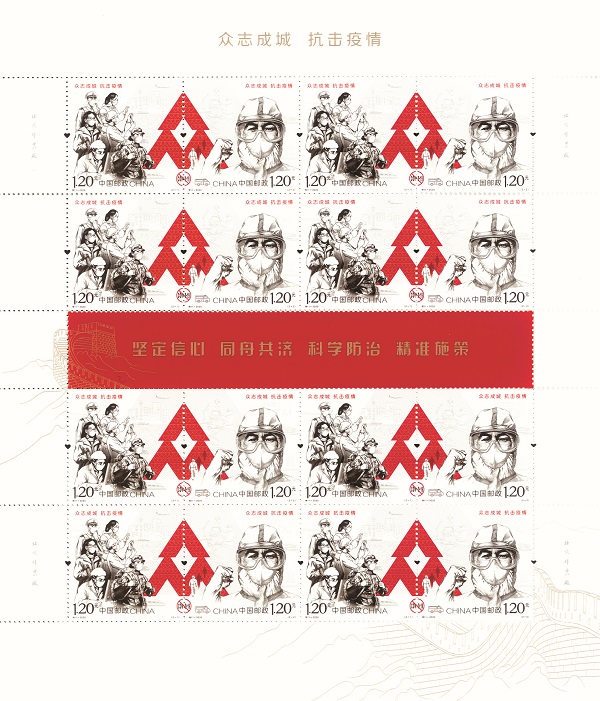 5月11日,国家邮政局和中国邮政集团有限公司共同举办的《众志成城 抗击疫情》特别发行邮票首发暨捐赠仪式在京举行。该套邮票1套2枚,充分展示在以习近平同志为核心的党中央坚强领导下全国人民众志成城抗击疫情的坚定决心,彰显中国共产党领导和中国特色社会主义制度的显著优势,宣传疫情防控中展现出的中国力量、中国精神、中国效率,宣传社会各界为抗击疫情作出的巨大贡献。中国邮政将捐赠邮票和邮品收入共计4300万元用于抗击疫情工作,其中向中国红十字会总会捐款2800万元,向奋战在抗击疫情一线的医务工作者捐赠1500万元的定制邮折。这是历年来中国邮政发行抗疫救灾邮票捐赠额最高的一次。