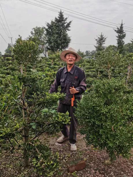 修剪黄杨的园艺村村民茅锦昌  求是记者 侯亚景 摄