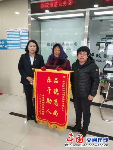 11月26日,玉林店邮政支局迎来一位特殊的客户,这位客户不是来办理业务的,而是手持一面“品德高尚,乐于助人”的锦旗,诉说要将这面锦旗亲手送给一位叫潘冬梅的投递员,感谢她在百忙之中帮助他们找回走失的孩子。