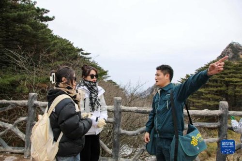 2月1日,谢菲俊在投递邮件的路上给游客指路。