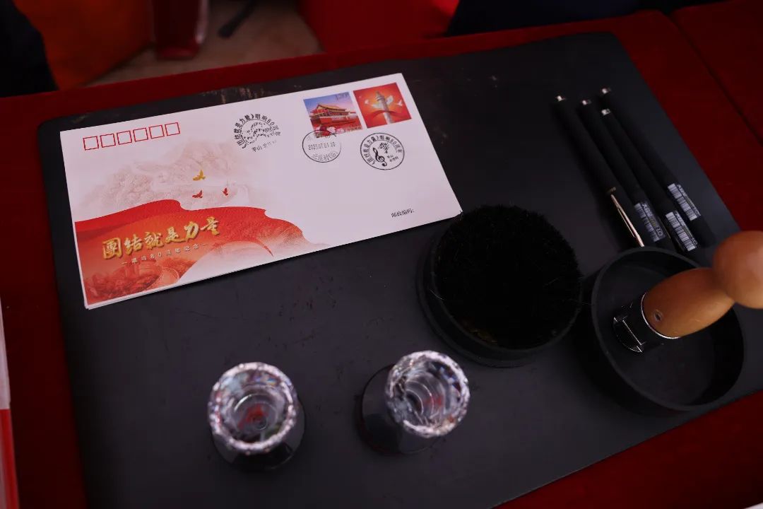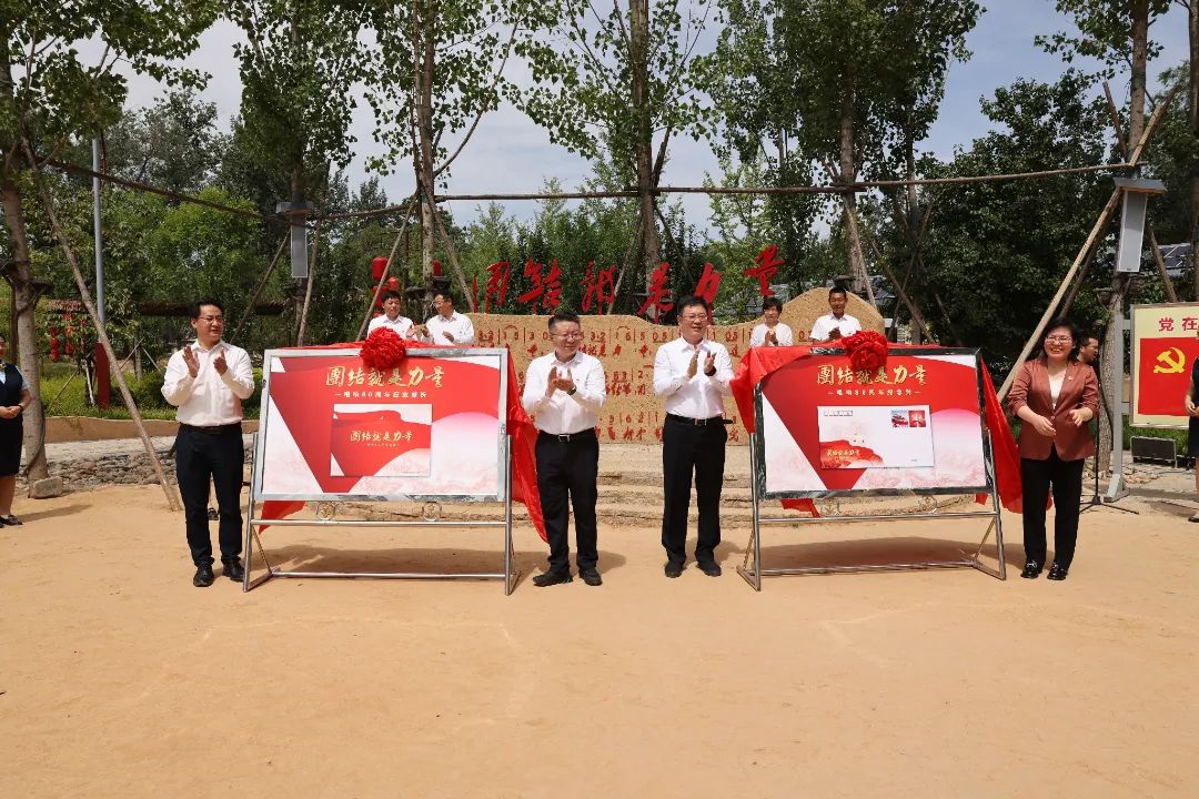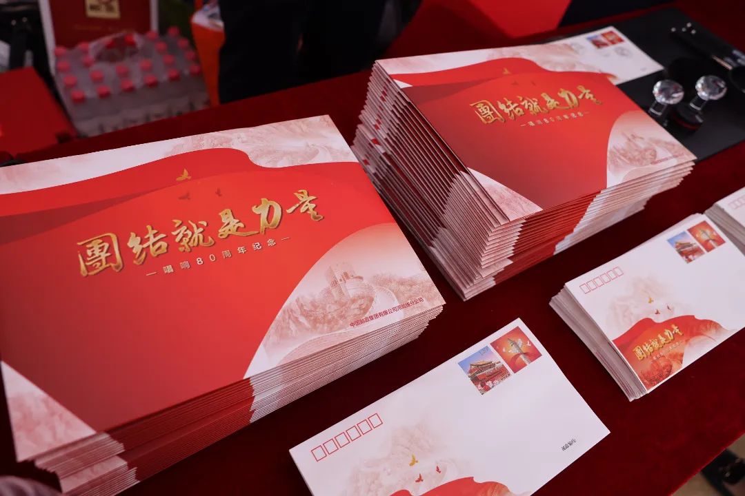 现场举行了《团结就是力量》唱响80周年纪念封、纪念邮折揭幕和捐赠仪式