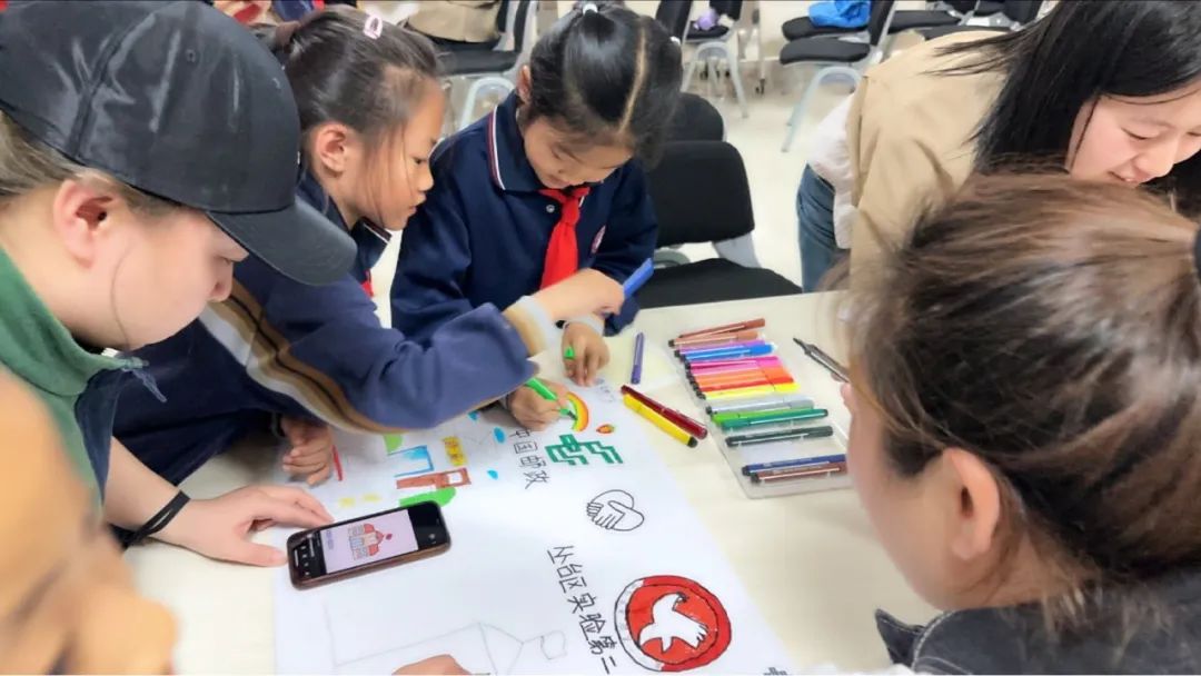 在亲子拓展环节,各小组分工明确又团结协作,同学们利用手中的五彩画笔,展开丰富想像,融合邮政元素,描绘出一幅幅寓意深刻、童趣盎然的画作。