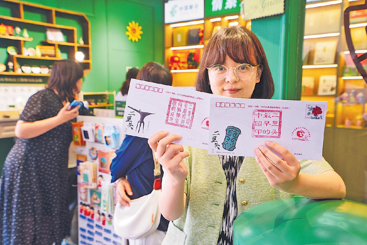 节日期间,二里头文化主题邮局还会邀请当地剪纸艺人来到这里,让游客近距离接触非遗。在剪纸艺人手起刀落间,一幅幅形神兼备的文物剪纸栩栩如生,围观游客不停发出阵阵赞叹。将文创产品与非遗相结合,二里头文化主题邮局为游客带来了全新的参观体验。二里头文化主题邮局的打造,是邮政与洛阳文博、文旅的双向奔赴,不仅丰富了邮政服务内涵、增强了传统业务创新发展的动力和信心,也成为推广洛阳文旅资源、传承中华优秀传统文化的平台。在这里,游客不仅能够领略到二里头文化的无穷魅力、中华文明的源远流长,更能感受到古老夏都文化在新时代的内涵与光彩。
