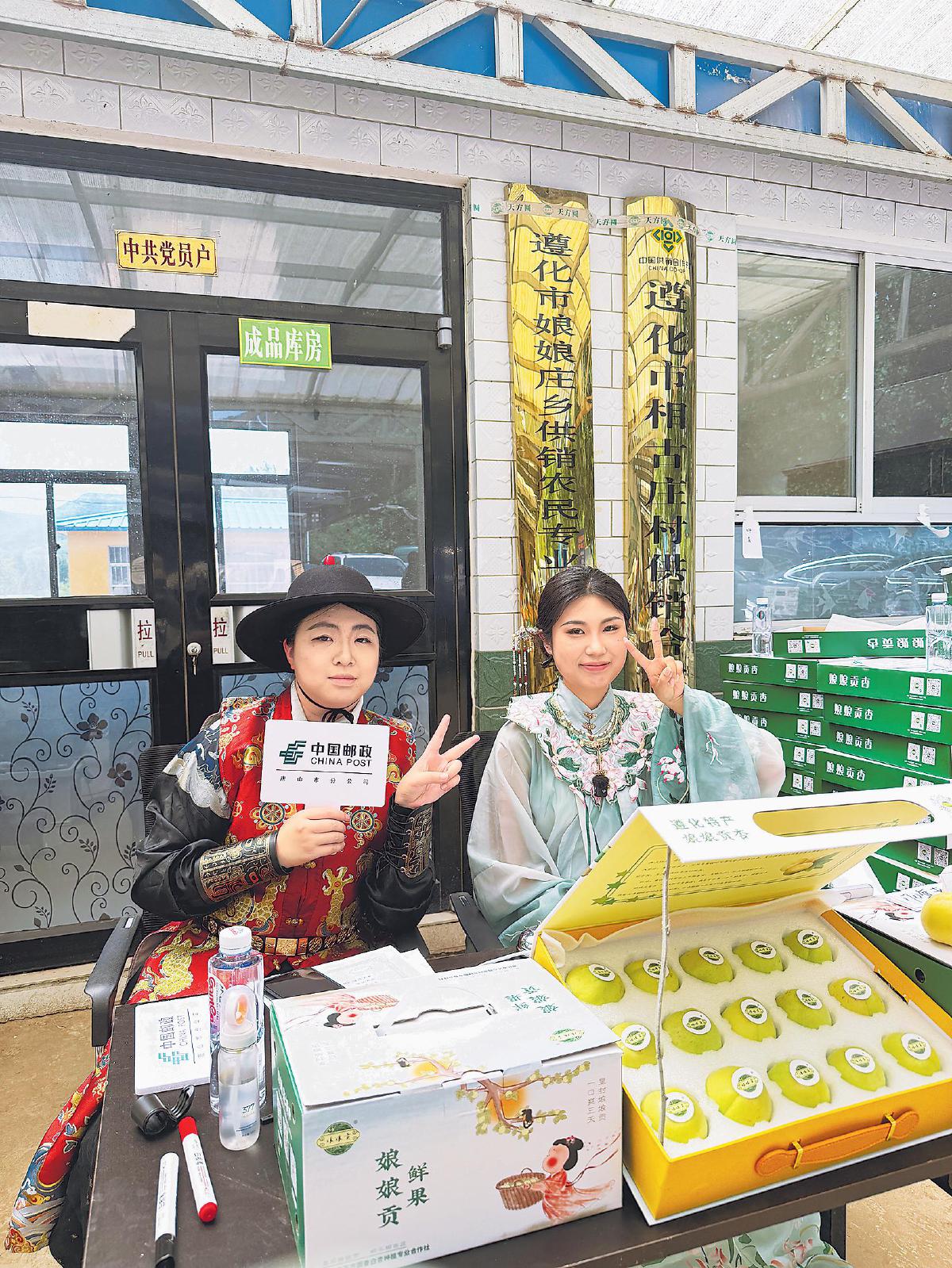 “《遵化州志》中曾记载:遵化东南二十五里,有村名相古庄,盛产银白杏,因味道鲜美,被定为年贡。”“相传在600年前的明朝,还有一段与香白杏有关的爱情故事。”直播间里,主播身着“娘娘装”,对有关“娘娘贡”香白杏的历史记载、文化典故侃侃而谈,在她身边坐着“皇上”和“小黄”。