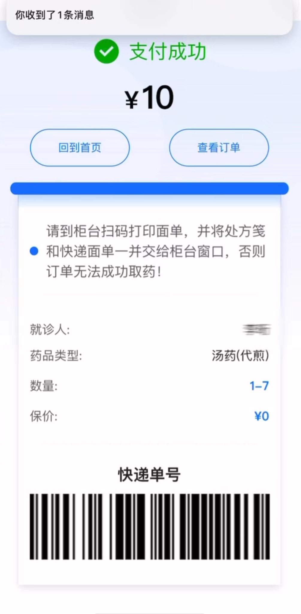 利用“药品代取代邮”二维码功能